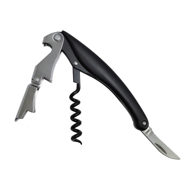This all-metal with nice finish corkscrew has an easy-pull wide-grip two step lever.
